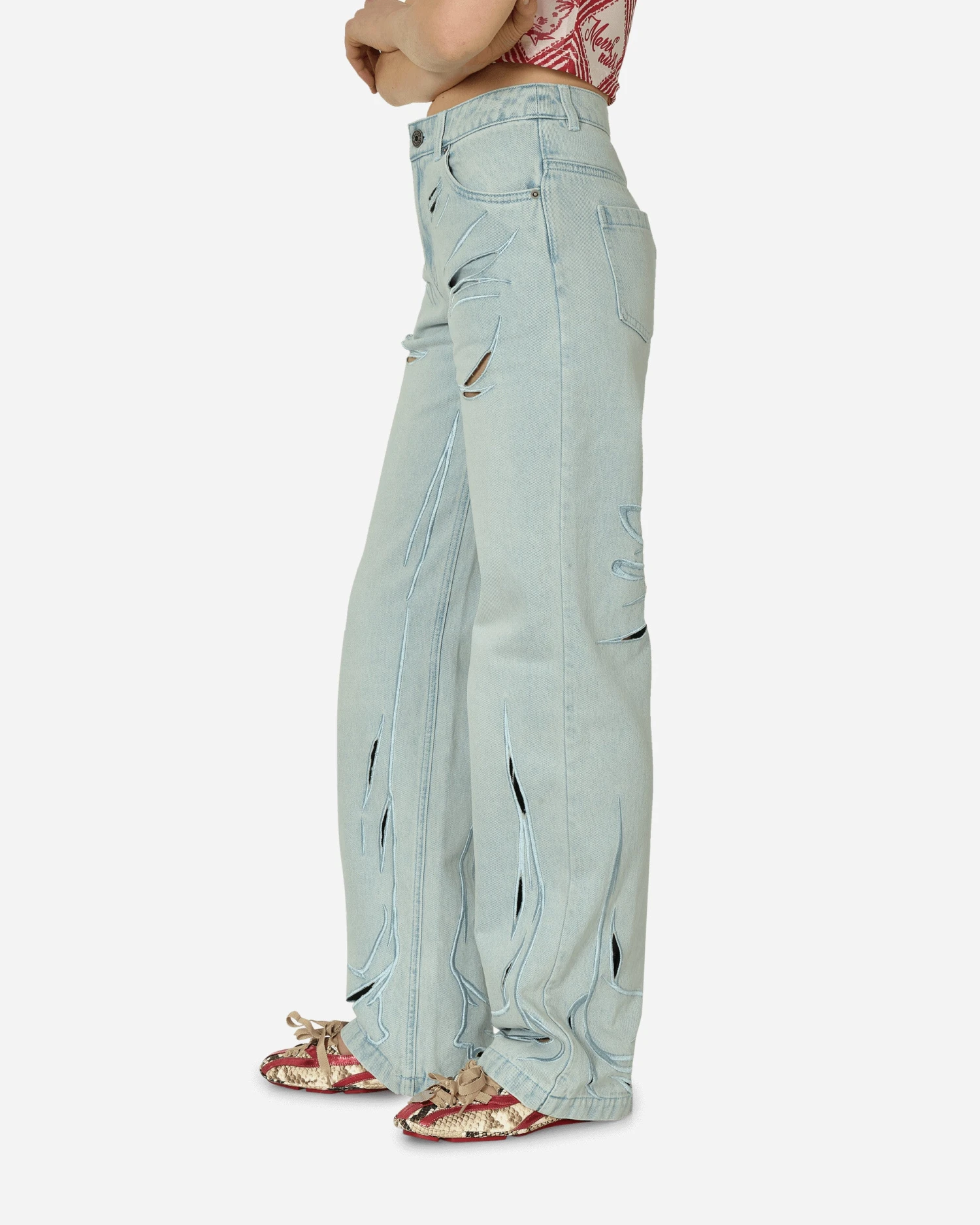 MARRKNULL Embroidery Cutout Folds Jeans Blue