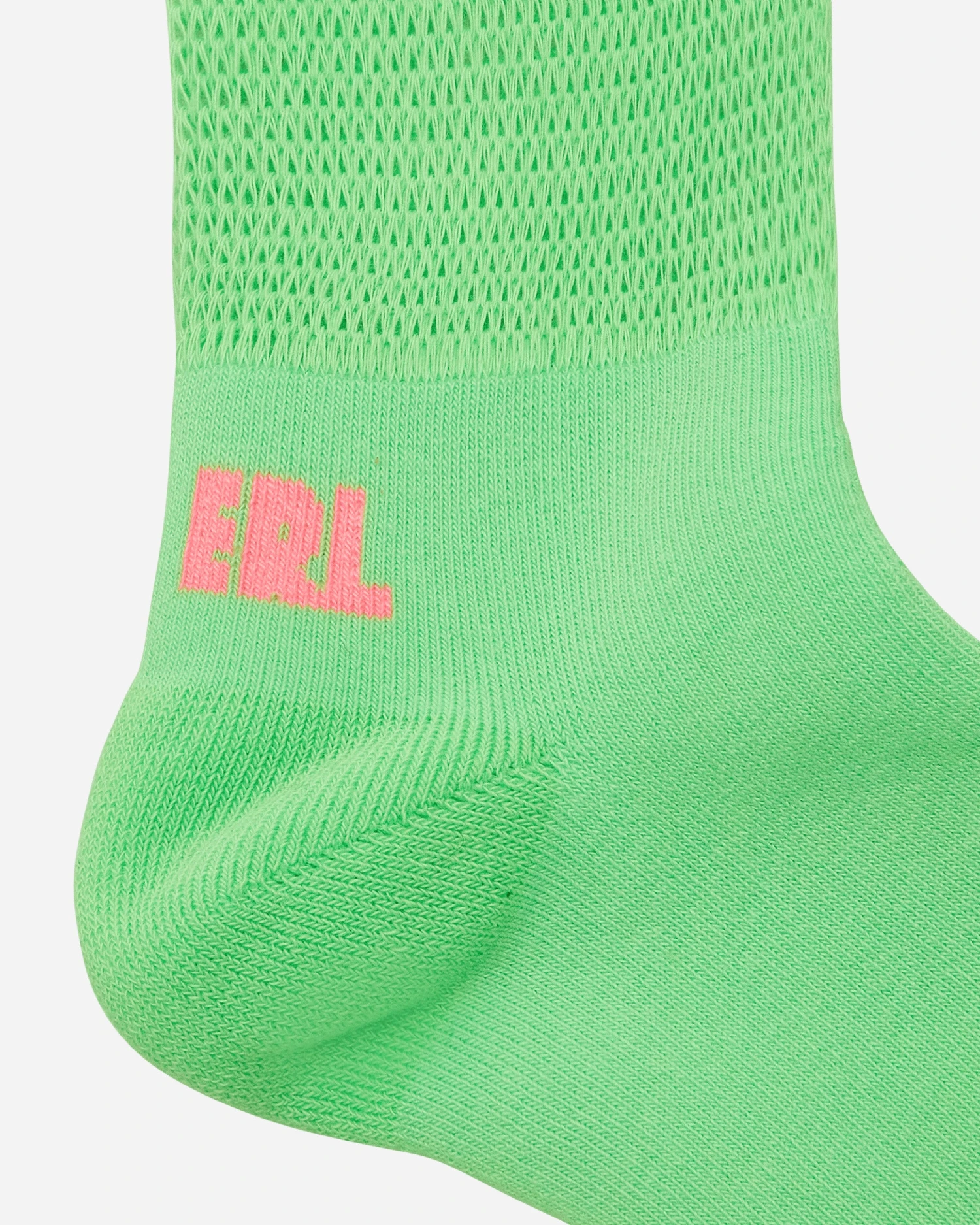 Elevate your rotation and your look with the eclectic soul of ERL in these green logo socks.