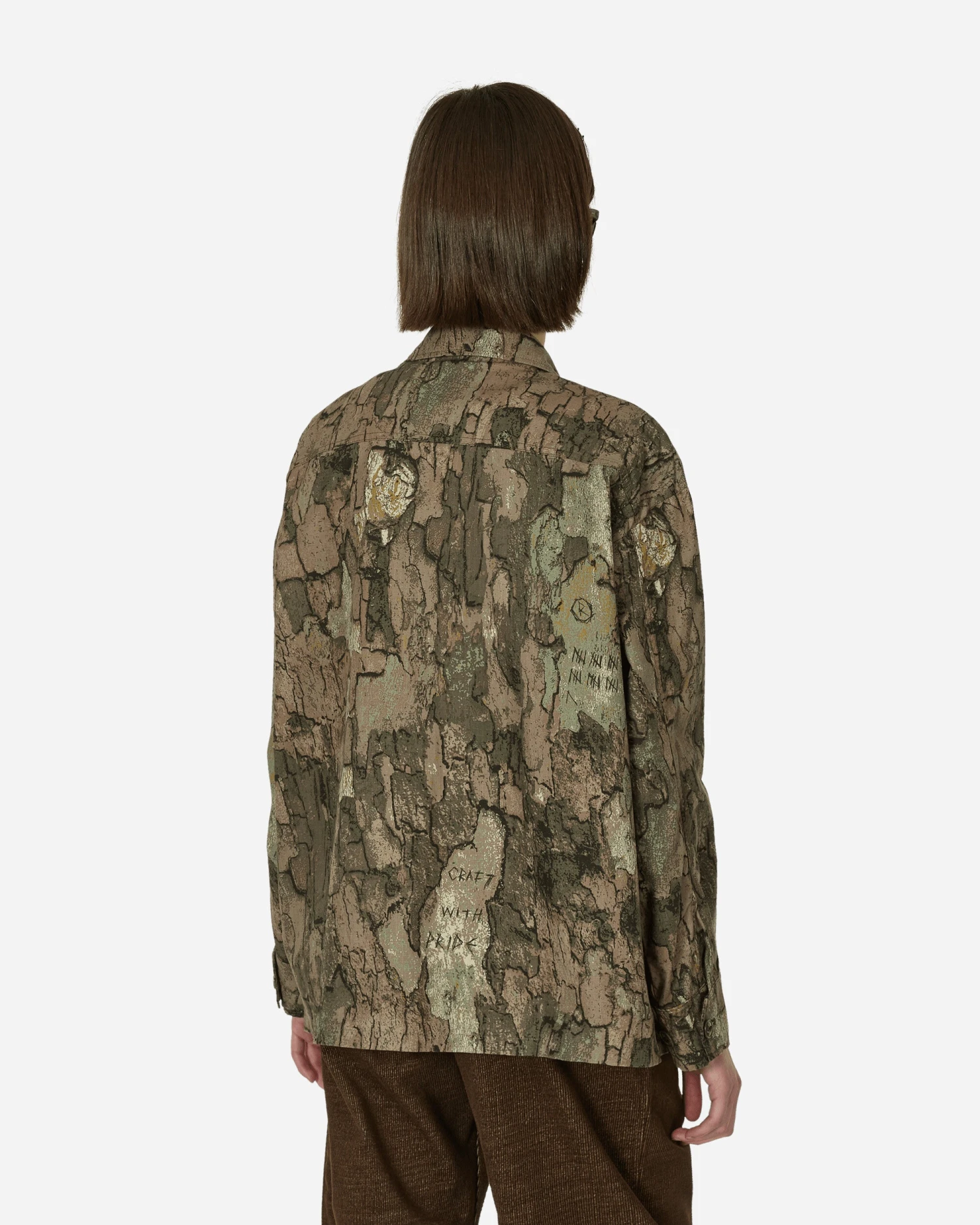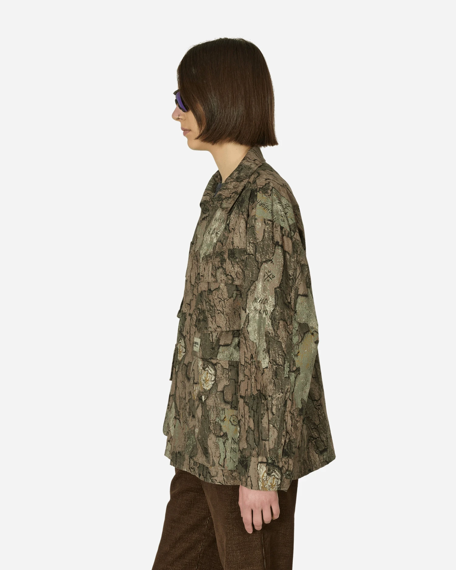 The Fatigue Jacket is made of cotton ripstop fabric with original camouflage pattern. The original camouflage with logos and motifs created by dye printing on durable cotton ripstop fabric. The jacket features four flap pockets with hidden snap closures, olive drab-colored cliptag above the waist pocket and brand label on side seams.