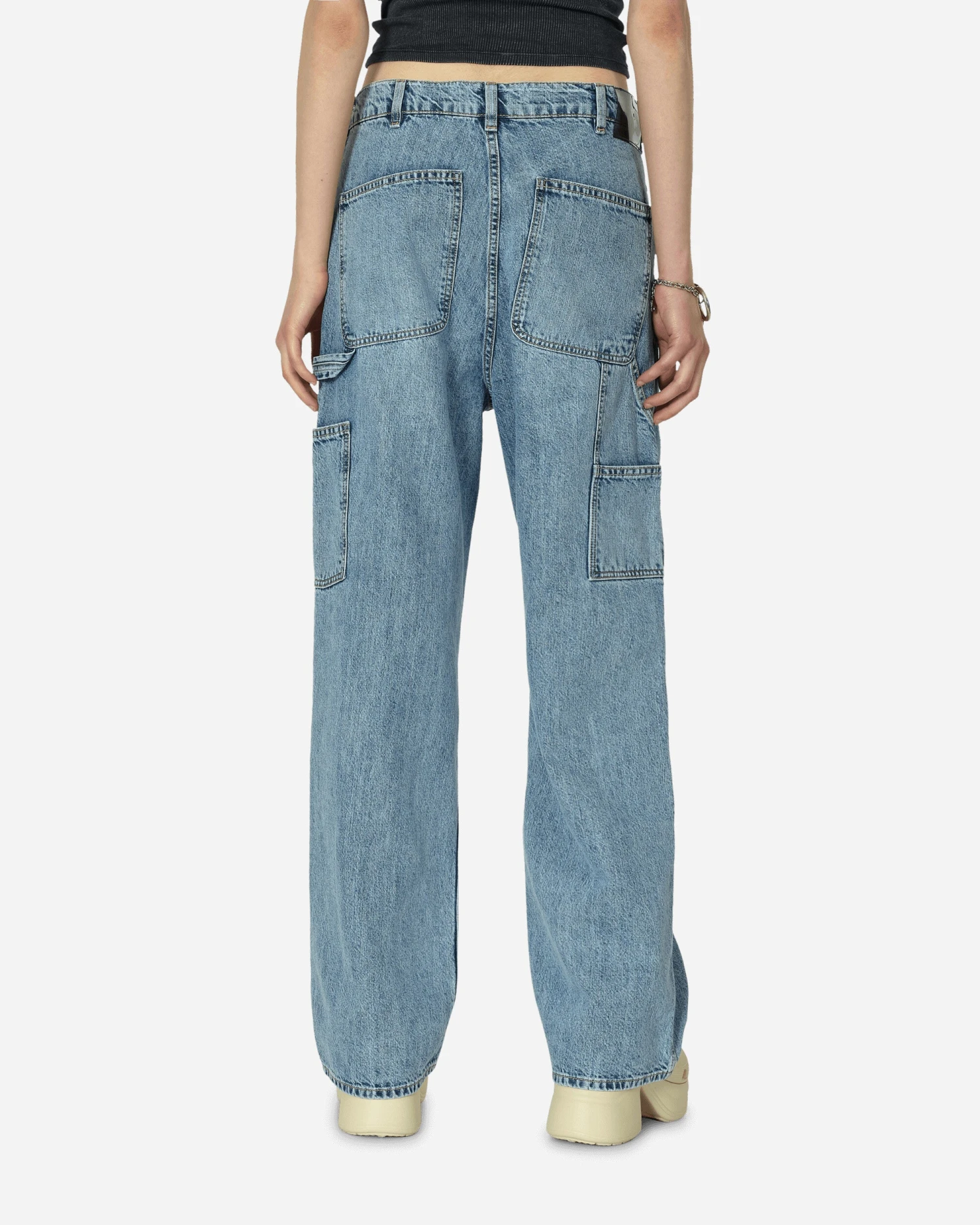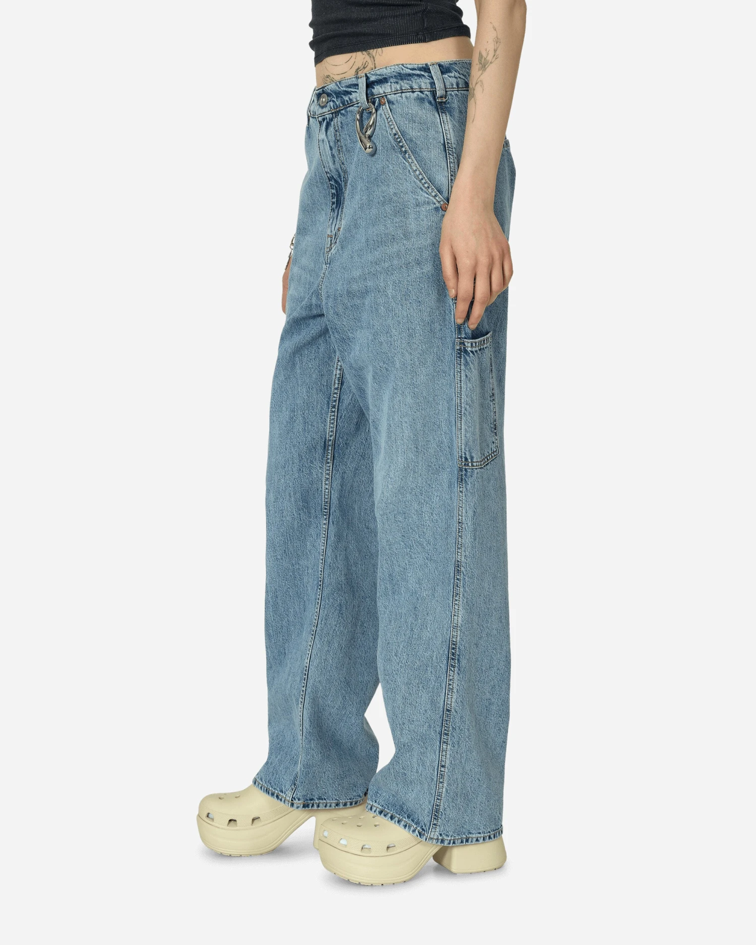 Produced in a vintage washed Italian denim, these wide legged Joiner Trousers have a relaxed, oversized fit and feature carpenter side pockets, a hammer loop, a zip fly and patch back pockets.