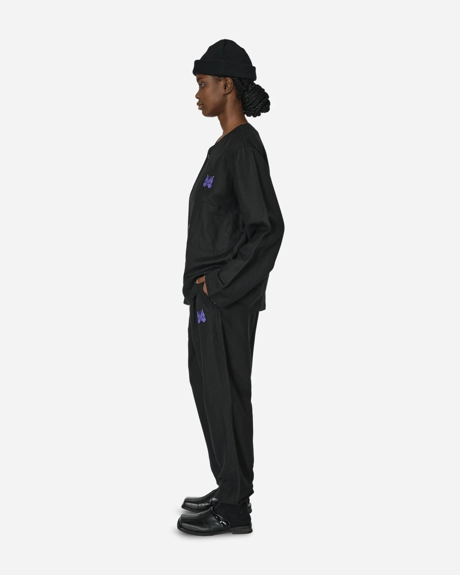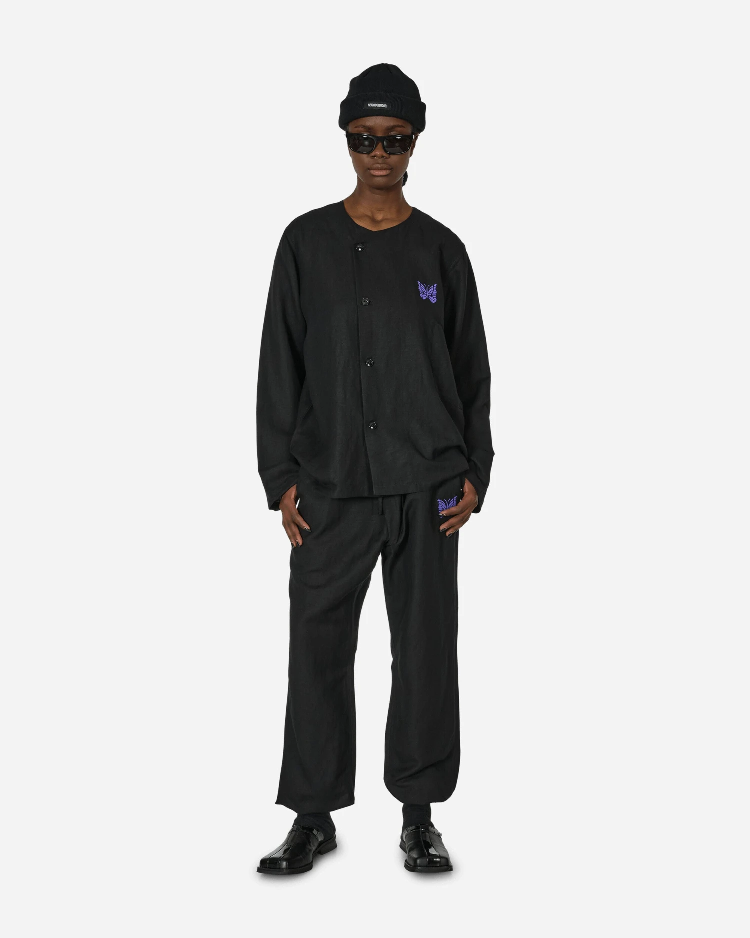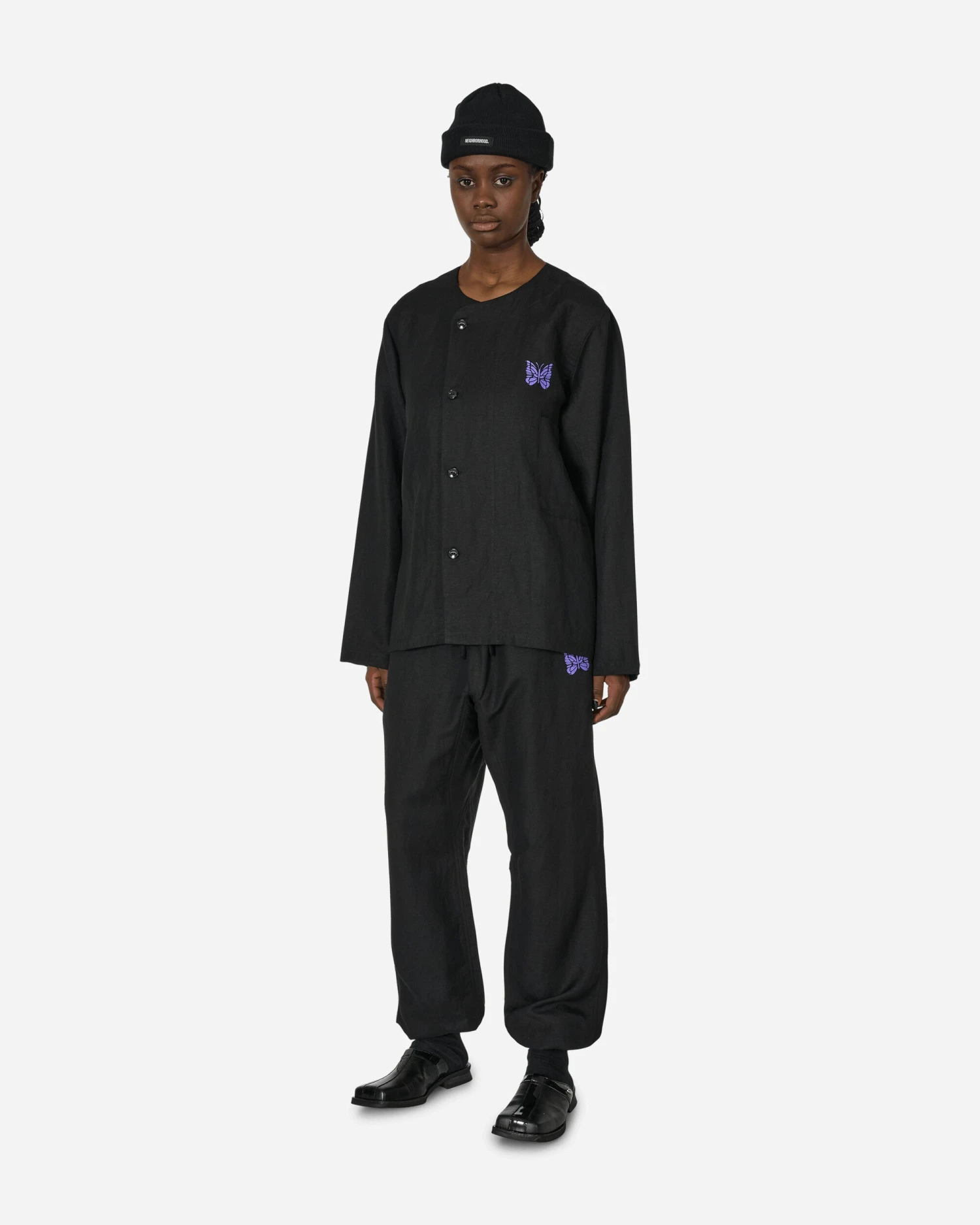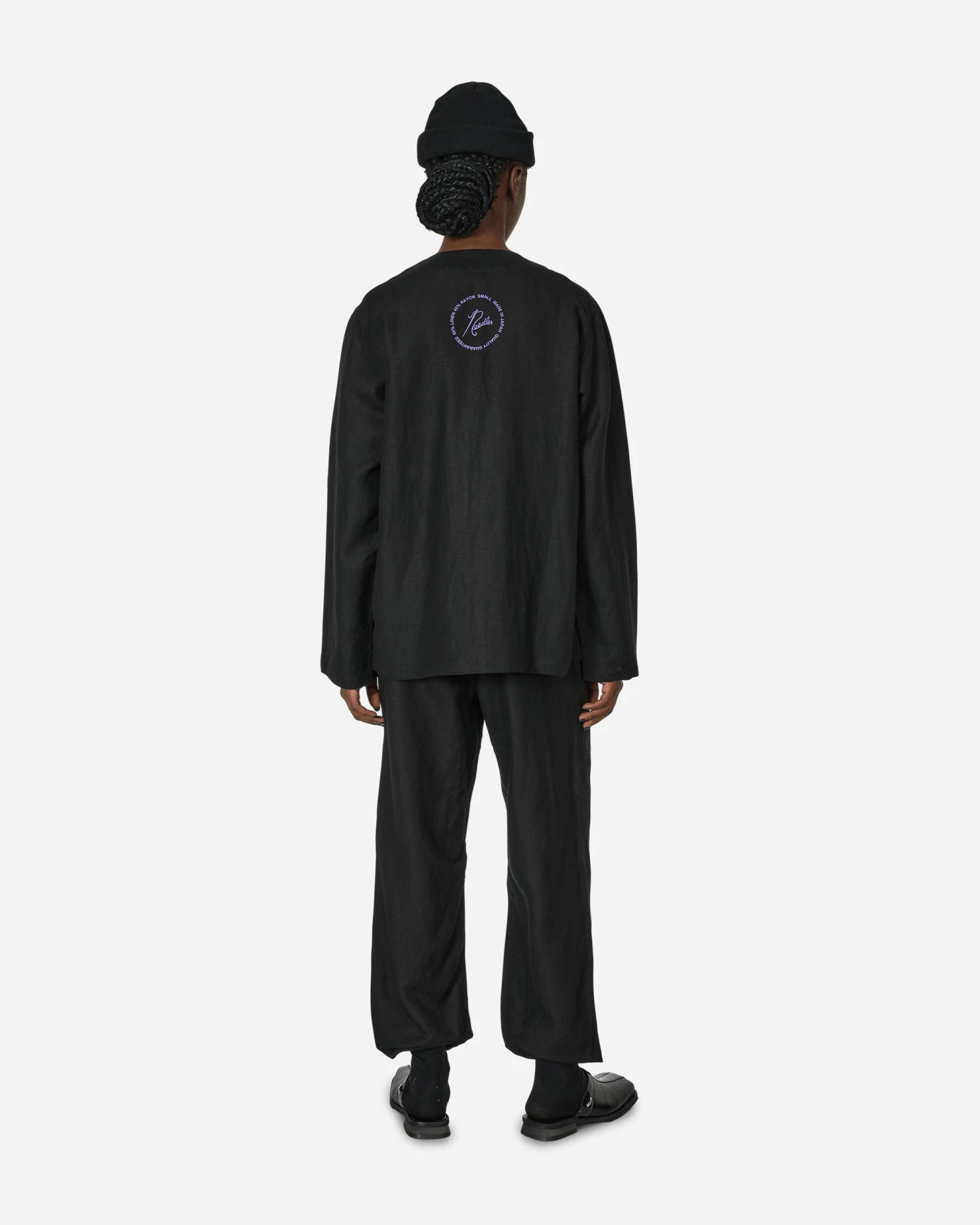 Thee Needles Pajame Set includes a shirt, pants and branded storage bag. The shirt features an off-set front button closure and an embroidered logo at chest. The relaxed pants features an easticated waistband and embroidered logo at front. Both of the items are made from a light canvas fabric.