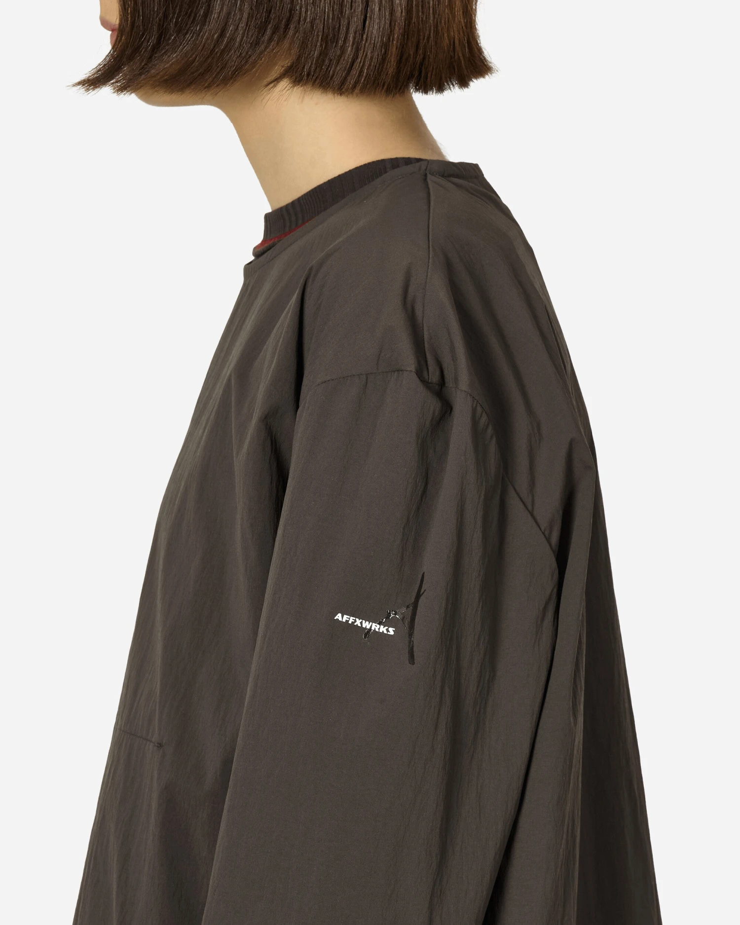 Founded by Stephen Mann, Kiko Kostadinov, Taro Ray and Michael Kopelman, AFFXWRKS is a menswear label that has its roots in experimentation. Initially born as a program on the pirate radio station Know-Wave, AFFXWRKS reinvents the concept of functional utilitarianism, being in balance between abstraction and basic themes. This loose fit lightweight shell jacket in a soft crease water-repellent stretch fabric features an inner kangaroo pocket and an adjustable waist toggle