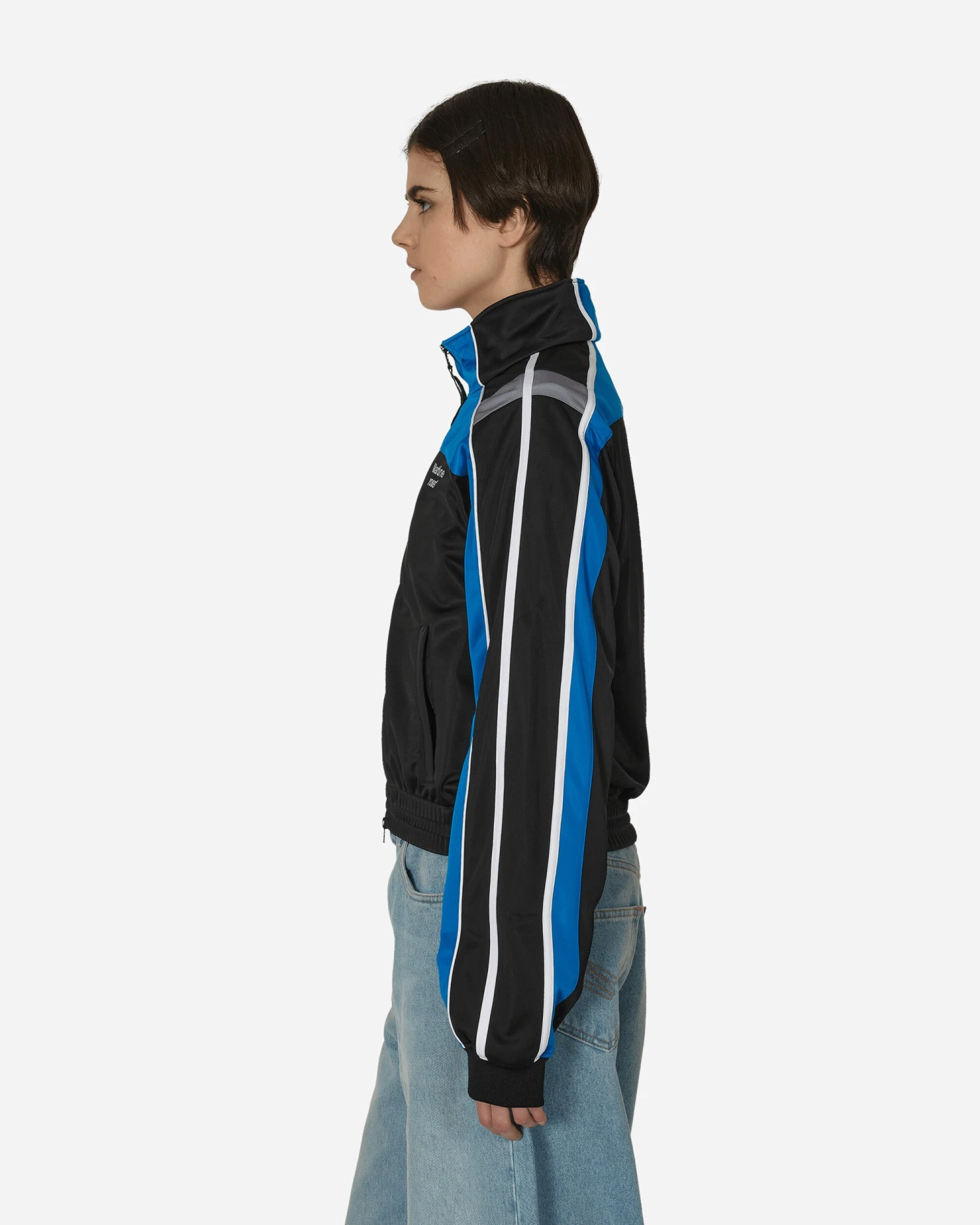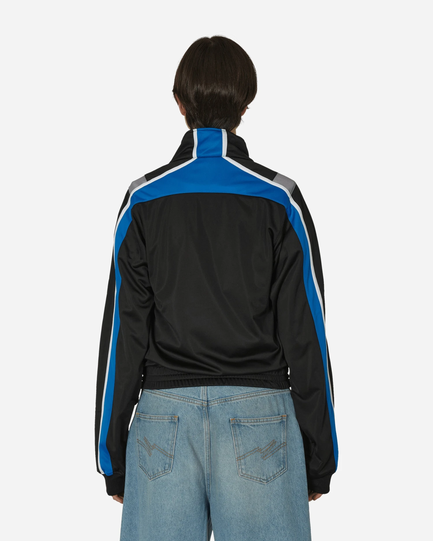 Martine Rose takes an unconventional approach to familiarity by revamping classic menswear pieces with unexpected fabrics, oversized proportions, deconstructed silhouettes and subversive traditional tailoring codes. The Shrunken Track Jacket is made from warp knit jersey and features seasonal screen-printed logo at chest, contrast piping and funnel neck collar. Shrunken at the body with extra volume in the sleeves.