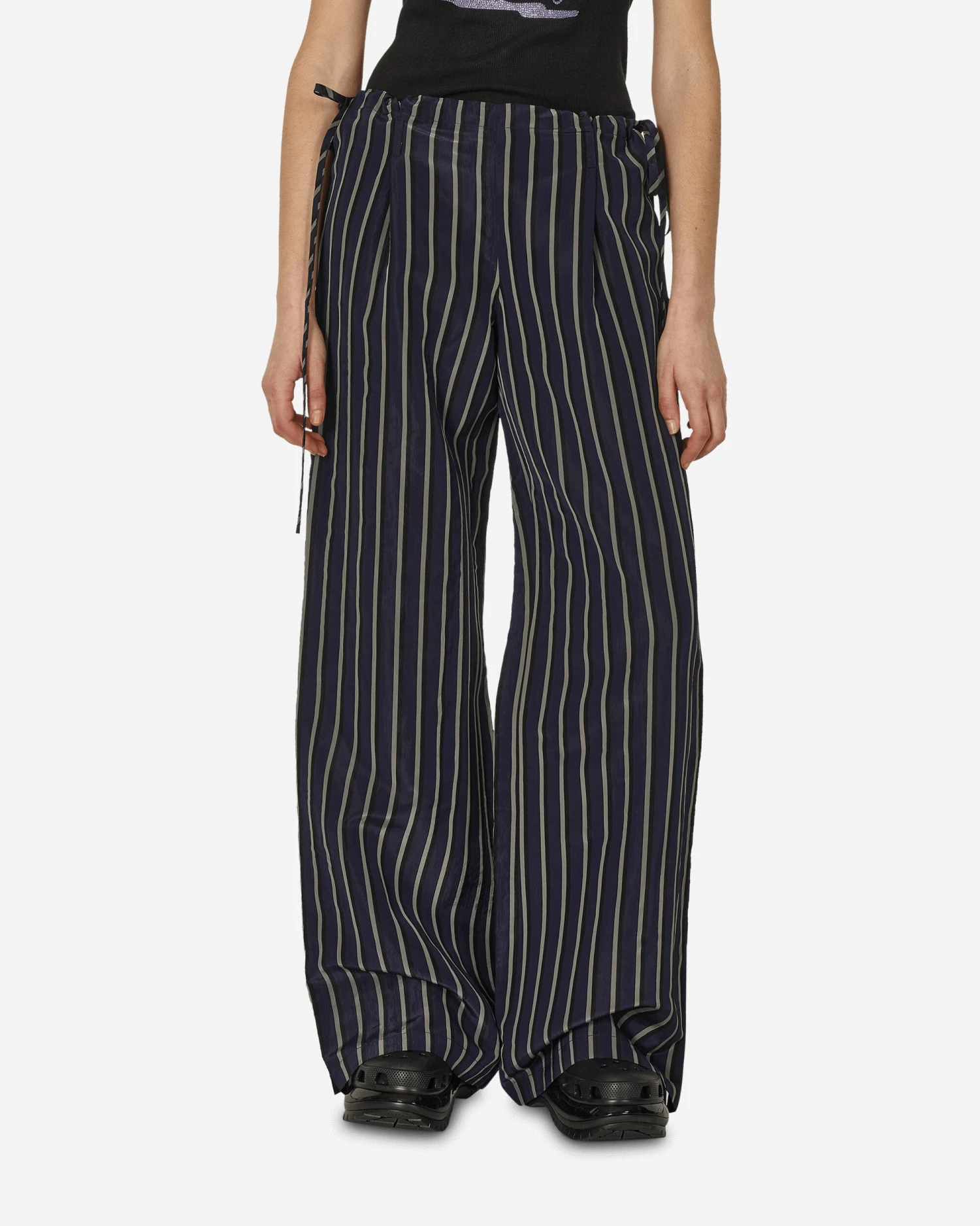 Front and back ties shape the waist of these drawstring pants, crafted of striped technical taffeta that has a subtle sheen. Cut for a wide, relaxed fit, the pleated silhouette can be customized using the drawstring ties at the waist.