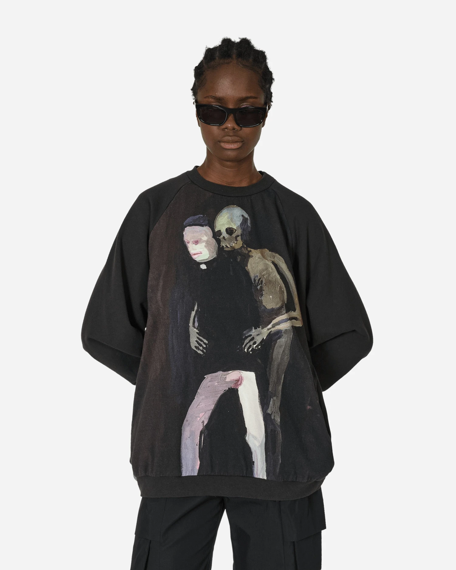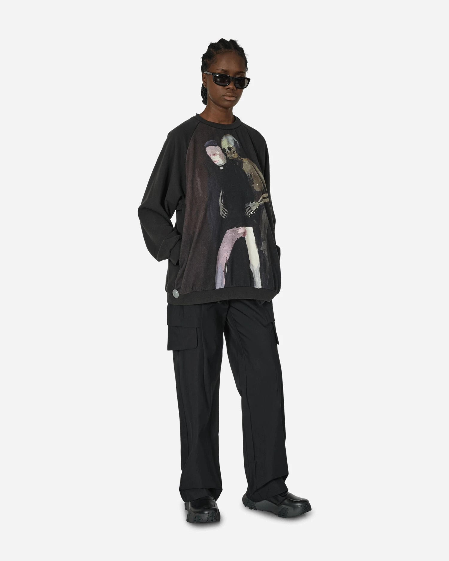 One of the most important characters of Japan’s Ura-Harajuku movement and the latest 30 years global fashion scene, The latest collection is inspired by the wailing Banshees of Irish folklore. The colors are suppressed creating a quiet, dark, and elegant world. Included in the men’s collection, this relaxed-fit crewneck sweatshirt features a print of the drawing of Helen Verhoeven.